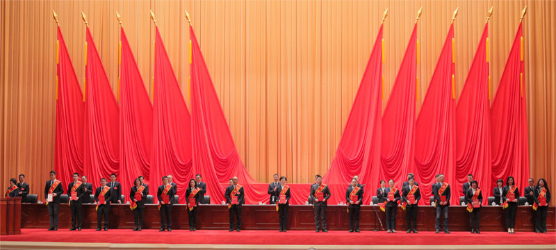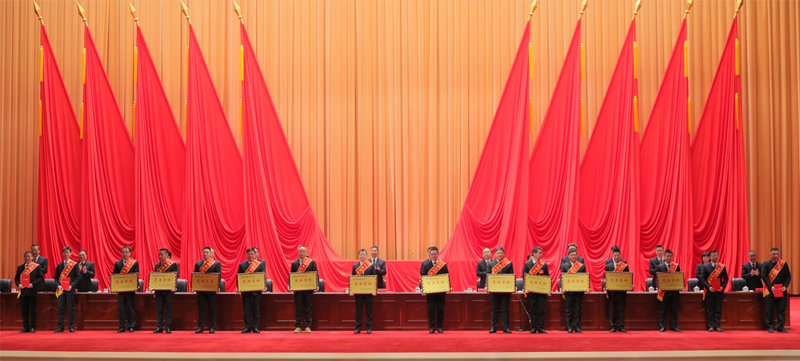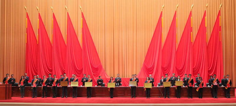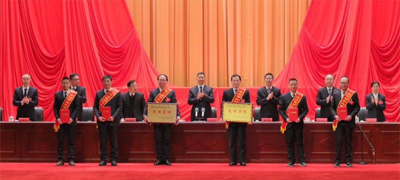 ▲集團(tuán)公司領(lǐng)導(dǎo)向受表彰的“揭榜攻堅(jiān)”先進(jìn)團(tuán)隊(duì)代表,年度工作、安全生產(chǎn)、科技創(chuàng)新、綜治信訪的先進(jìn)集體和先進(jìn)個(gè)人代表頒獎(jiǎng)